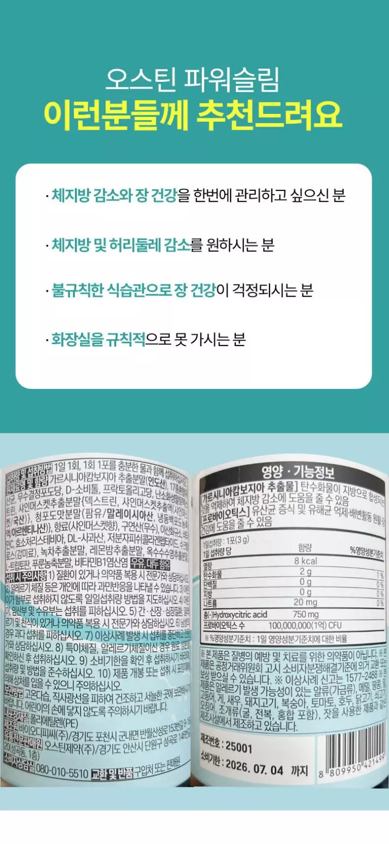 *1일 1회, 1회 1포를 충분한 물과 함께 섭취